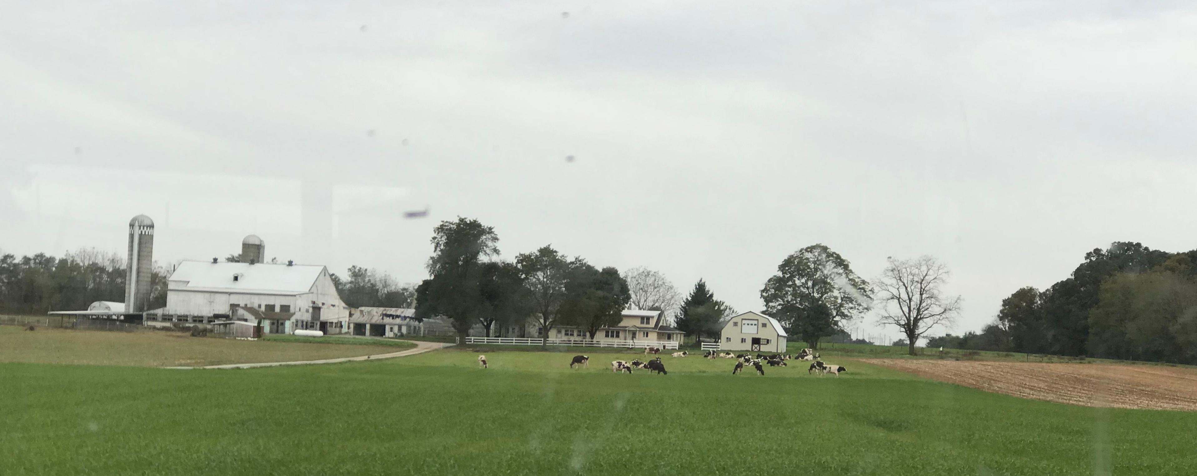 Amish farm dairy farm (with airplane overhead).